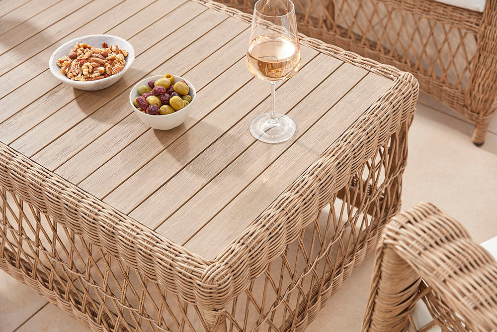 - Wooden components (e.g. acacia) should be cleaned with warm water and re-oiled annually to maintain appearance and weather resistance