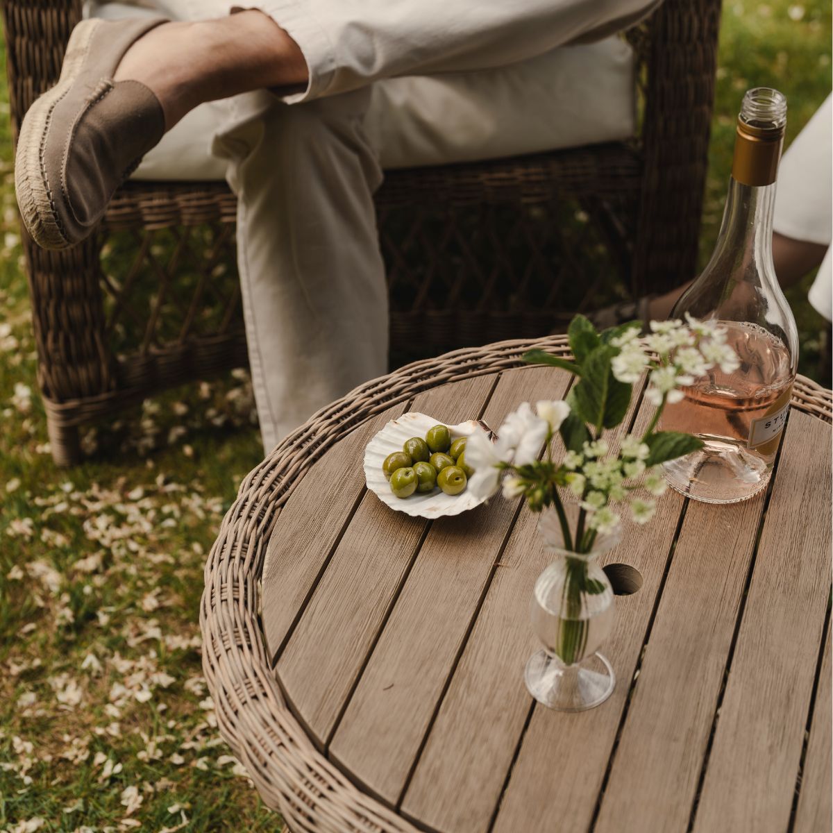Arlington is crafted using a handwoven, all-weather PE rattan designed to perform reliably outdoors. UV and rain resistant, the weave retains its structure and appearance through the changing seasons with minimal care. Beneath the weave, a lightweight aluminium frame provides strength and stability while keeping the set easy to reposition — ideal for moving with the light as the day unfolds.