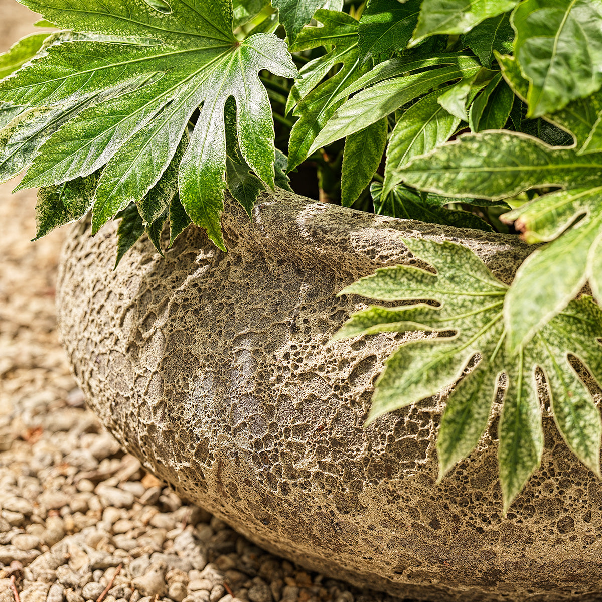 This frostproof stone-effect plant pot is built to withstand all seasons and can be left outdoors year-round. To promote plant health, always use pot feet for adequate drainage.