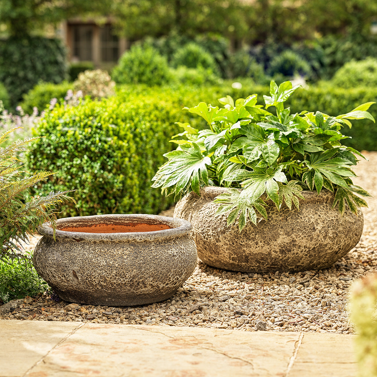 The Ancient Collection is designed to suit outdoor spaces of all kinds. Its natural tones and weathered stone appearance sit comfortably in both contemporary and traditional gardens, bringing timeless design and sculptural shapes to patios and courtyards. This large stone plant pot features a wide bowl shape to display fuller plants or a cluster of blooms. It's sturdy build and frostproof coating mean it can stay outside all year round, giving you one less thing to think about.